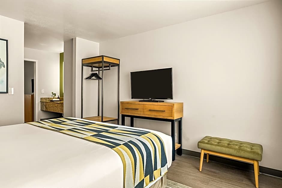 The room includes king bed, full bathroom, sofa, sitting area, working desk, and two flat-screen TVs. In addition, the room offers a microwave, refrigerator, coffeemaker, hairdryer, secure wired and wireless internet, and telephone with voicemail. Non-Smoking Hotel.
